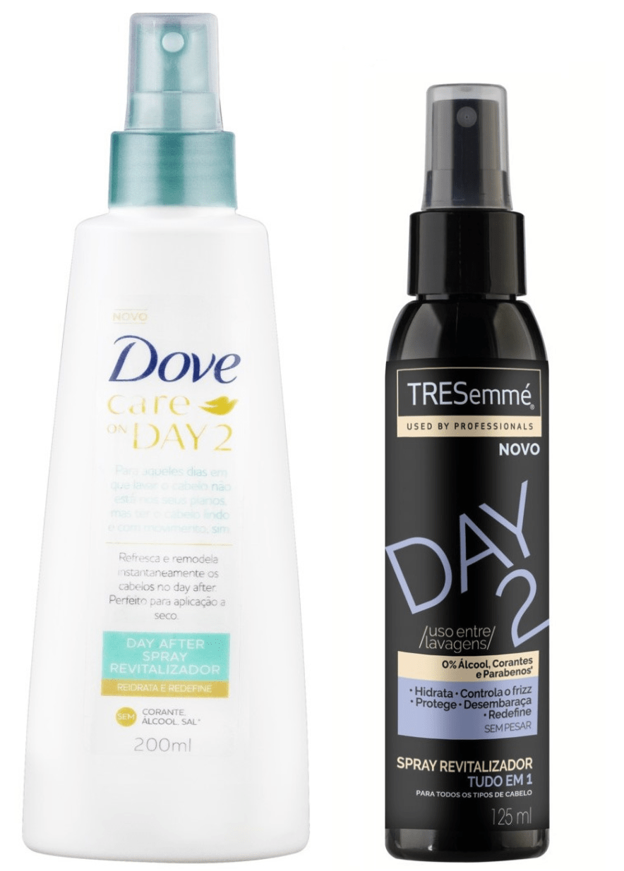 Ambos os produtos atendem as expectativas e deixam os cabelos com aspecto mais bonito e pontas mais hidratadas. Porém, o meu preferido foi o Day 2 da TRESemmé que pareceu ter um resultado melhor, além de ter um cheiro mais intenso e mais gostoso na minha opinião. O Day 2 da TRESemmé também possui mais funcionalidades: hidrata, controla o frizz, protege (do calor), desembaraça e redefine; enquanto o spray Dove Care on Day 2 promete reidratar e redefinir. Talvez várias funcionalidades a mais citadas na embalagem tenha sido uma questão de Marketing melhor, mas com a capacidade de proteger do calor, o spray revitalizador Day 2 da TRESemmé também é capaz de assumir a função de protetor térmico.