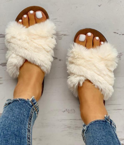 Este modelo de rasteirinha com pelos é muito fofo. Não é porque a gente desceu só para comprar pão que tem que ir toda desarrumada, não é? rsrs É diferente, a cara do inverno, se perder o conforto que só as sandálias rasteiras nos trazem.