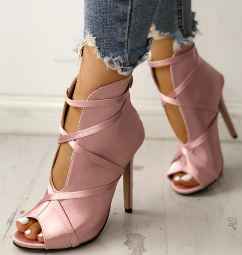 Esta peep toe rosinha é um luxo. Achei bem diferente e interessante. As tiras envolvendo o calçado dão um ar super moderno e a cor traz delicadeza ao look.