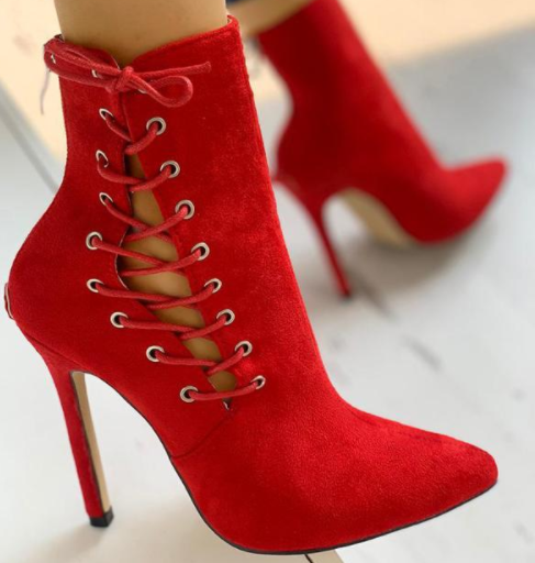 O último calçado selecionado de hoje é esta bota vermelha de camurça e salto fino com detalhe de amarrar na lateral (disponível em outras cores). Impossível não atrair todos os olhares por onde passar. O que acharam?