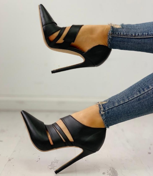 Se a intenção é ser diferente, este modelo de sandália que parece até um scarpin fará você se destacar. O look ficará muito mais estiloso. Se você é baixinha que nem eu, vai adorar esse salto super alto rsrs.