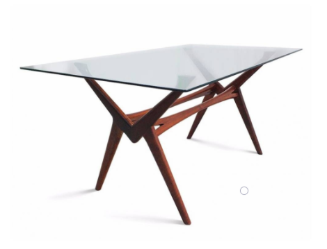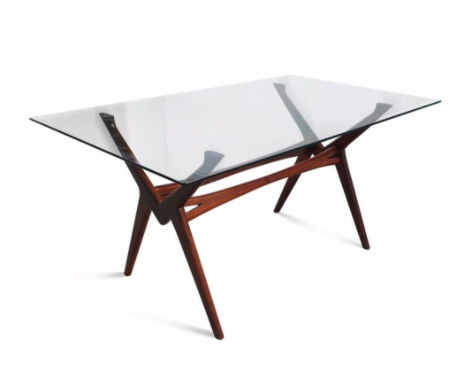 Outro belo exemplar do estilo retrô é esta mesa com tampo em vidro e base em madeira Os pés em forma de palito são uma marca do estilo retrô e este é um lindo modelo para compor a sala de jantar.