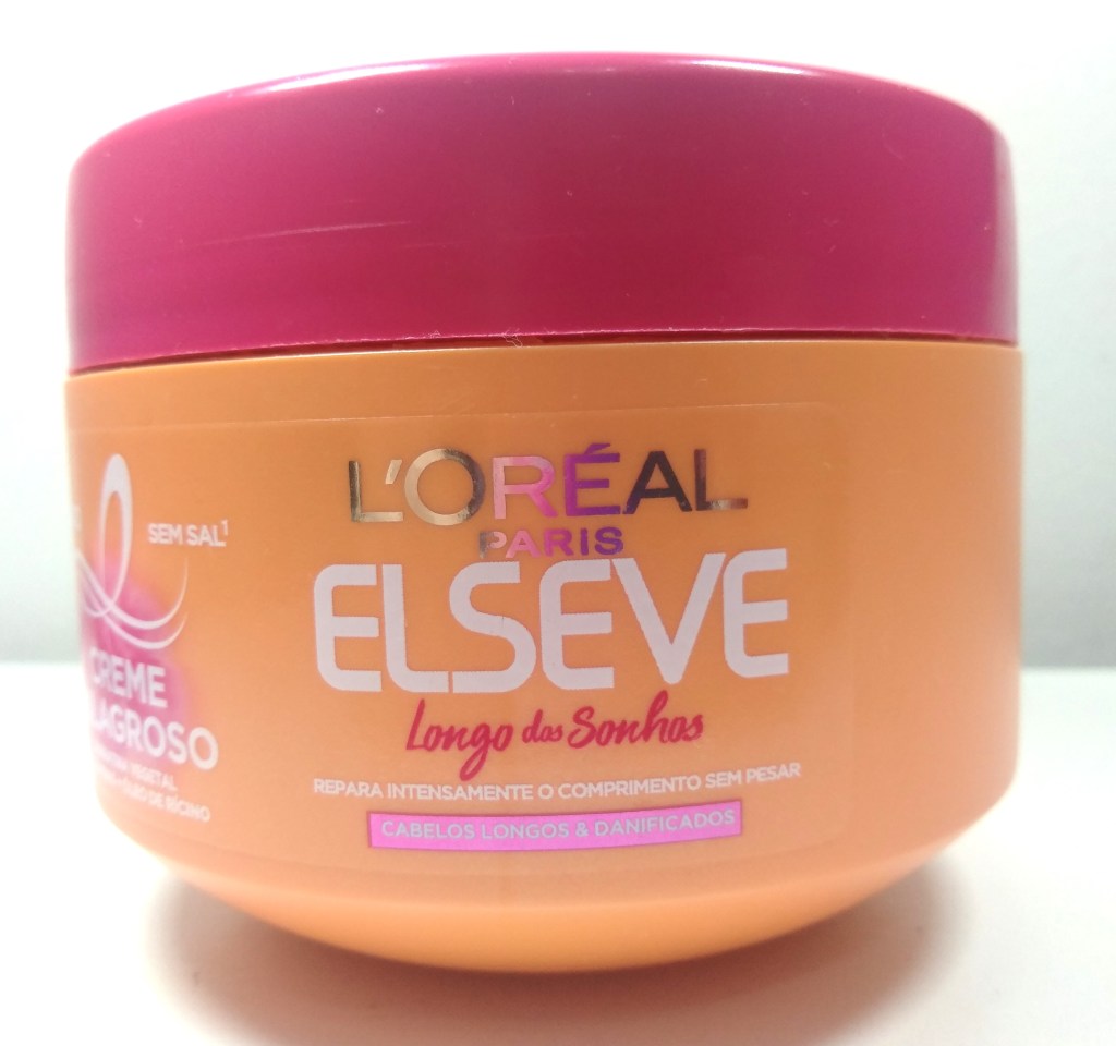 A resenha de hoje é sobre uma máscara da L’Oréal Paris Elseve que faz muito sucesso no exterior: a Longo dos Sonhos. Ela é uma máscara reconstrutora voltada para quem quer manter os cabelos longos, evitando cortar as pontas danificadas. Já fiz uma resenha sobre o shampoo Elseve Longo dos Sonhos, que inusitadamente também possui óleo de rícino na fórmula e complementa a linha que promove uma nutri reconstrução potente.