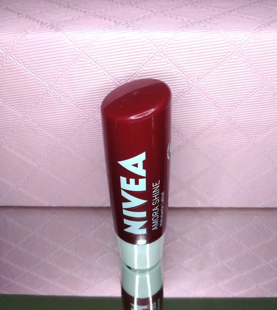 O hidratante labial Amora Shine da Nivea possui óleos naturais e promete 24 horas de hidratação profunda para os lábios.